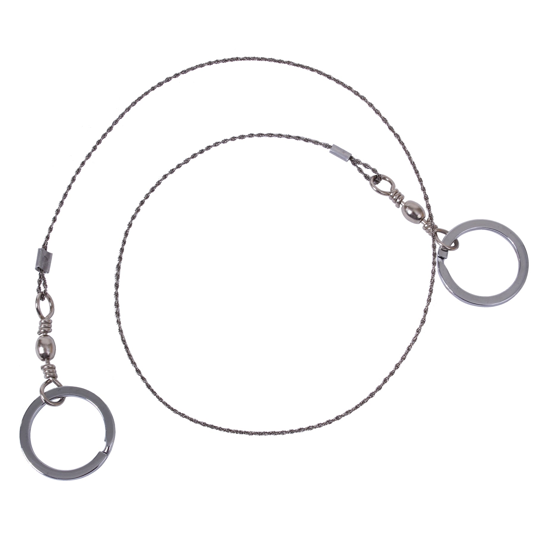 Lightweight and compact Wire Saw is built to cut through the toughest of materials and easily stores in your survival bag. The super strong wire can cut through wood, plastic, and bone making this the ideal tool for survivalists. Choose this saw as a lightweight alternative to a traditional saw for carrying on the go. The flexible wire allows you to create a knot around the object for easy back and forth incision cutting. Securely hold the wire saw with circular thumb loops on either end to use properly. 22" of stainless steel (20 1/4") for saw part between the two clamps.