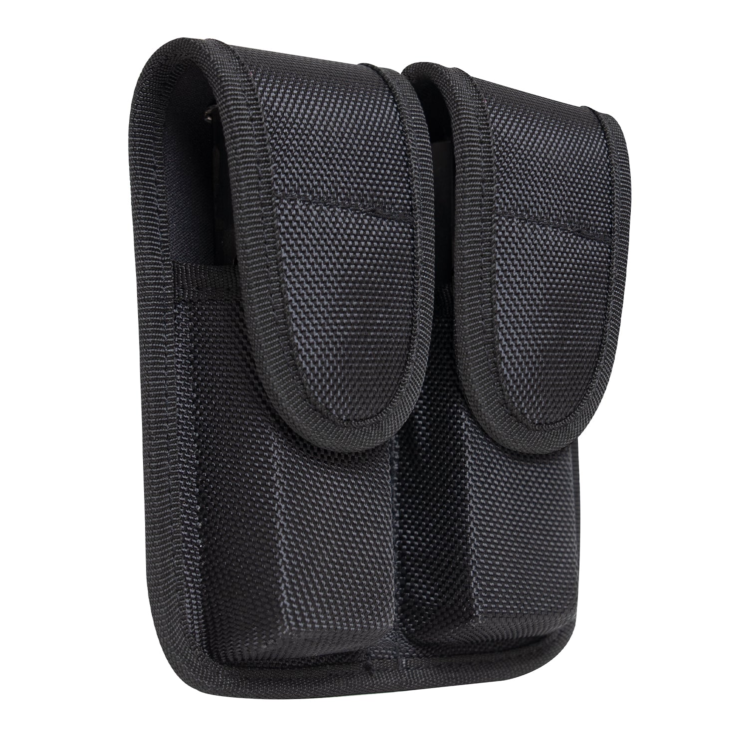 Enhanced Molded Dual Magazine Pouch is the perfect accessory for law enforcement, public safety professionals, shooting sport pros, airsoft enthusiasts, and more. Designed to securely hold 2 9MM or .45 magazines, this gun pouch ensures your magazines are insulated and easily accessible. The firearm mag pouch is constructed from durable materials and features a high-density foam center, providing years of reliable use. The soft lining inside the tactical pouch prevents damage to your magazines, while the reliable snap closures ensure they stay securely in place. The snap closure on the back fastens to duty belts up to 2 ¼ inches wide, making it compatible with most standard-sized belts. Measuring 6 inch x 5 inch, this dual magazine pouch is compact and practical, making it an essential addition to your tactical gear.