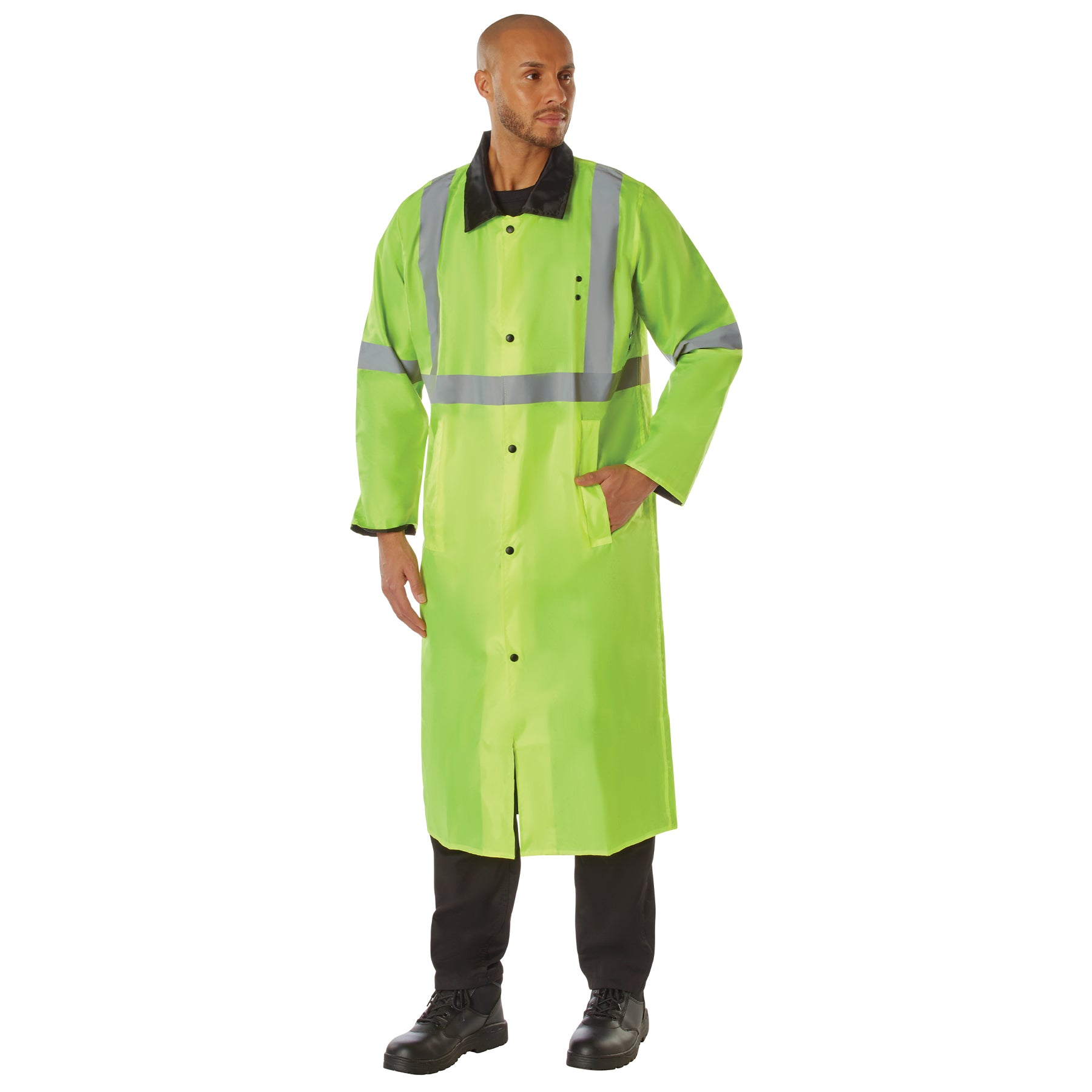 Reversible Reflective Rain Parka is designed to provide the ultimate rain protection and safety while out in the field. This rain jacket features 2 inch reflective striping around the chest, biceps, harness, lower waist, cuffs, and over the shoulders, ensuring high visibility in low-light conditions. The reversible style with storm/snap front offers full protection against the elements, while the pass-through pocket for audio devices, front zipper, and 5-button design adds convenience and durability. Additionally, the uniform raincoat includes a badge tab, making it an ideal choice for public safety and first responders. Whether you're working in wet weather or need high visibility for safety, this rain parka is built to meet your needs.