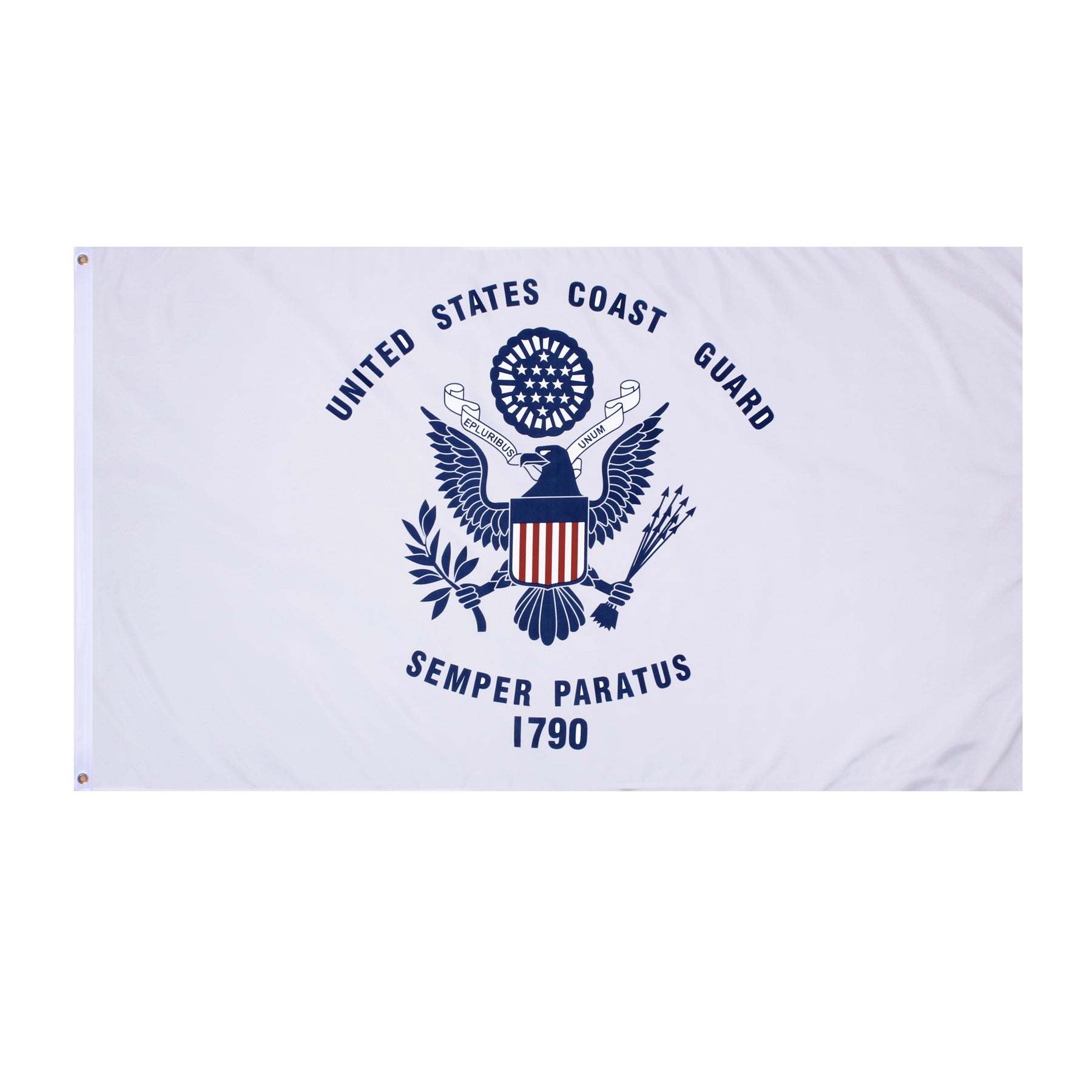 United States Coast Guard Flag measures 3’ x 5’ and is made a durable, non shiny polyester material. This military flag also features grommets for easy display.